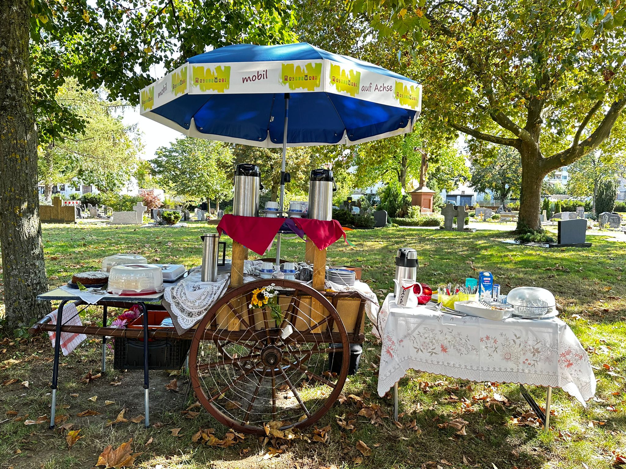 MACHEN WAS ist ein Verein, welcher Menschen aus der Region zusammenbringen möchte. In diesem Rahmen veranstalten wir an trockenen und noch etwas warmen Zeiten monatlich auf dem ALTEN FRIEDHOF in Durmersheim von 14:00 bis 17:00 Uhr ein mobiles TrauerCafé mit dem Ziel, alle einzuladen, die trauern, die neue Bekanntschaften suchen oder alte pflegen möchten, die die besondere Atmosphäre mit netten Leuten genießen und etwas plaudern oder aber einfach auch still sein möchten.